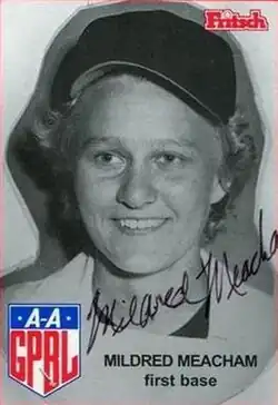 Mildred Meacham (May 5, 1924 – January 7, 2017) was an infielder who played in the All-American Girls Professional Baseball League. Listed at 5' 8", 160 lb., Meacham batted and threw right handed. She was nicknamed ″Meach″.[1]