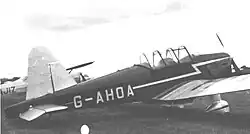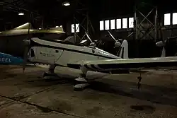 The M.18 Mk.2 had the fin and rudder moved forward by 22 in and was fitted with a 150 h.p. Blackburn Cirrus Major III. The sole example, serial HM545,[2] first flew at Woodley in November 1939. It was evaluated by the Air Ministry as a possible replacement for the Miles Magister.[3] According to test pilots, it handled better than the Magister, was impossible to spin and flew well at night.[3] However the Mk.2 was regarded as lacking robustness.[3] The Mk.2 was used through the Second World War as a communications aircraft by Miles Aircraft. It was civilianised as G-AHKY and won the Goodyear Trophy air race in 1956 at 130 mph and the Kings Cup Air Race in 1961 at 142 mph.[4] After ownership by several private pilots, it was retired in 1989 and from 1996 to date, the aircraft has been on display at the National Museum of Flight in Scotland.