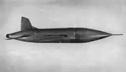 Instead of a revival of the full-scale M.52, the government decided to institute a new programme involving expendable, pilotless, rocket-propelled missiles; it was envisioned that a total of 24 flights would be performed by these models, which would explore six different wing and control surface configurations, including alternative straight wing and swept wing arrangements.[34] Wood referred to the failure to revive the full-scale aircraft as "at one stroke Britain had opted out of the supersonic manned aircraft race".[18] The contract for the expendable missiles was not issued to Miles but to Vickers-Armstrongs, whose design team was led by noted British engineer and inventor Barnes Wallis.[35] While the base design work was conducted by Wallis' team, engine development was performed by the RAE itself. The product of these efforts was a 30 per cent scale radio-controlled model of the original M.52 design, powered by a single Armstrong Siddeley Beta rocket engine, fuelled by a mix of high-test peroxide.[21][35]