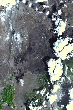 ![]() Satellite picture of the burn scar of the Milford Flat Fire taken on July 17, 2007 | |