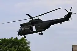 A tight and long-standing defense alliance exists between Singapore and Brunei. Both militaries cooperate through periodic bilateral exercises, business exchanges, visits, and cross-attendance of courses, in addition to the Singapore Armed Forces (SAF)'s ongoing training exercises in Brunei that have been going on for more than 40 years.[6] Singapore also maintains a training establishment in Brunei, known as the Jalan Aman Camp[7] and operates support helicopters mainly to transport the soldiers to Lakiun Camp in Temburong District for jungle training.[8] The other Singapore military establishment in Brunei is the Lakiun Camp in Temburong.[7] This provides jungle training for the SAF in the interior of Temburong.