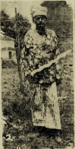 During the Philippine insurrection, Walter McAron, who became Grand Gu Gu Grandississimo (GGG) of the Military Order of the Serpent (MOS),[6] together with 15 other American soldiers, were captured by the Katipunan, so that they are well acquainted with the customs and manners and traditions of the Katipunan organization. This Order was introduced into the United States and subordinate bodies were organized in many of the States. One of the spectacular features was the parade of members as Snakes in costumes, representing every tribe in islands of the Philippines, from the Tagalog to the Iggorotto. The Katipunan, the Great Snake, headed the smaller ones, and he inserted the royal sting of the jungle for those wishing to learn the mysteries of the Order when the initiates were instructed.[7]