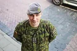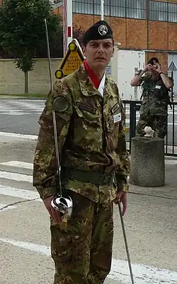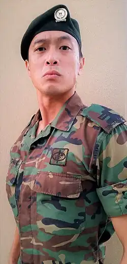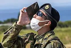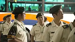 In all service branches, the beret is "bashed" to the right and a badge or insignia is worn above the left eye. In the army, all units can wear them with certain units wearing unique ones.[13] In the navy, the beret is an optional item[14] and in the air force, it is only worn by certain units.[15]