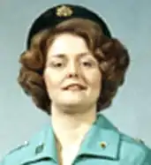 An Army officer wearing black female beret with Officer Cap Device, c. 1975[90]