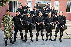 Tank troops (tanquistas) wear black berets (including the "Gran Unidad Rescate de Sanguily"); also the special troops (Brigada Especial Nacional "Gallitos Negros") of the interior ministry (MININT).[20][21][22]