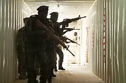 The Royal Danish Army first introduced the black berets for its armour personnel in 1958.[31] In 1968 it was extended to the whole army, Homeguard and parts of the Navy and Airforce, replacing the standard issue Side cap.[32]