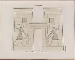 King Senkamanisken slaying enemies at Jebel Barkal.[3]Meroitic prince smiting his enemies (early first century AD)