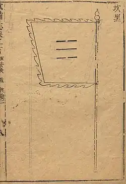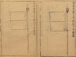 Qi Jiguang deployed his soldiers in a 12-man 'mandarin duck' formation, which consisted of four pikemen, two men carrying daos with a great and small shield, two 'wolf brush' wielders, a rearguard officer, and a porter.[72] This system bears some resemblance to European systems (pike and shot) developing in England where formations of arquebusiers would be protected by a group of pikemen.[73] Volley fire was also used.[74]