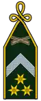 | Official translation[2] | General | Lieutenant General | Major General | Brigadier General | Colonel | Lieutenant Colonel | Major | Captain | First Lieutenant | Second Lieutenant | ||||||||||||||||||||||||||