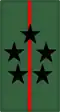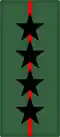 | Jenderal besar | Jenderal | Letnan jenderal | Mayor jenderal | Brigadir jenderal | Kolonel | Letnan kolonel | Mayor | Kapten | Letnan satu | Letnan dua | ||||||||||||||||||||||||||