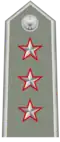 | Generale d'Esercito | Generale in comando d'Armata | Tenente generale | Maggior generale | Colonnello comandante di reggimento | Colonnello | Tenente colonnello | Maggiore | Primo capitano | Capitano | Tenente | Sottotenente | ||||||||||