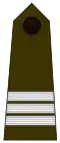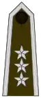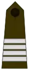 | Generał broni | Generał dywizji | Generał brygady | Pułkownik | Podpułkownik | Major | Kapitan | Porucznik | Podporucznik | ||||||||||||||||||||||||||