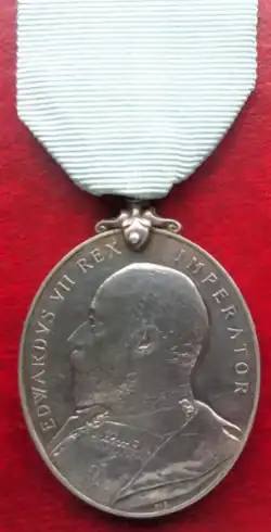 Established by King Edward VII by Army Order No. 211 of 1904, the medal was awarded to privates and non-commissioned officers for 18 years efficient and irreproachable service in the Militia and attending 15 annual camps. Any previous full-time service in the Regular Army did not count, although service in other volunteer, territorial or auxiliary forces could be counted, provided that five years immediately preceding the award were served with the Militia. Breaks of service of under one year were allowed.[2] In 1906 eligibility was extended by Royal Warrant to certain militia forces overseas, including Bermuda and Malta.[3]
