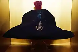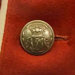 During the Crimean War both infantry regiments were embodied, the 1st regiment from December 1855 to May 1856, which remained at Barnard Castle and the 2nd regiment from March 1855 to May 1856, which spent the last few months at Burnley. Both were understrength, with a total of 630 man of all ranks between them.[23] neither were among those embodied during the manpower shortage caused by the Indian Mutiny. However, the Durham Artillery Militia were embodied during the latter stages of the Mutiny from 5 April 1859 to 25 March 1861, serving in the garrison of Gosport and Portsmouth.[22][24][25][26] In 1860 the 1st regiment was made a Fusilier regiment, the 1st Durham (Fusilier) Militia.[27] The revival of the Volunteer forces led to competition for the available manpower.[28] The rise of local constabularies meant that the militia would be used less for keeping order than to replace regular soldiers on home service during large mobilizations.[29]