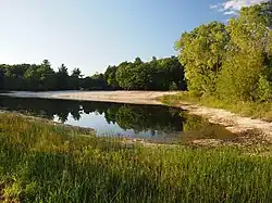 Swimming is available in a 2.5-acre (1.0 ha) spring-fed lake south of the campground. Sand has been added to make a 250-foot (76 m) beach.