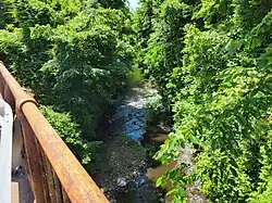 The Mill River is a 1.25-mile-long (2.01 km) tributary of the Connecticut River in Springfield, Massachusetts. It flows from Watershops Pond (also known as Lake Massasoit) to its confluence with the Connecticut River. It is referred to as "The Miracle Mile" in a 2009 master's thesis that outlines possibilities for reclaiming the river's mouth as a recreational area.[1] As of 2011, the final 350 feet (110 m) of the river, including its mouth, is confined in a pipe underneath Interstate 91, railroad tracks and a car dealership.[1] Many Springfield residents have bemoaned the loss of the Mill River as a recreational area, and hope to gain greater access to both it and the Connecticut River in upcoming years.[2][3] As it has for over a century, today the Mill River serves as a barrier between Springfield neighborhoods. Surrounding it are some of the most densely urbanized locations in Springfield.[4]