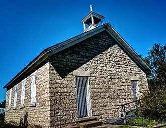 Mill Rock School is a historic one-room schoolhouse located south of Baldwin, Iowa, United States. It is one of over 217 limestone structures in Jackson County from the mid-19th century, of which 12 are school buildings. This school building was built in 1869 by Abner Hunt and P.A. Downer. The stone blocks that were used in the construction of this rectangular structure vary somewhat in shape and size, and they were laid in courses. The window sills and lintels are dressed stone. There is a brick chimney on the west elevation, and two entrance doors on the east elevation. Having two entrance doors is unusual for rural Jackson County schools.[2] A name and date stone is located in the east gable.