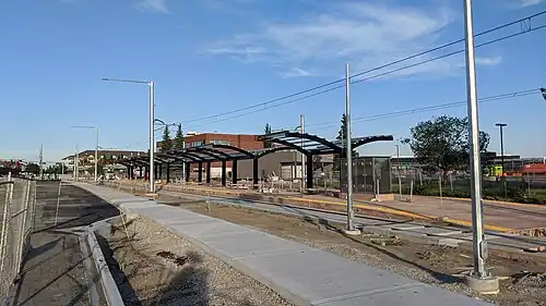 Mill Woods stop is a tram stop in the Edmonton LRT network in Edmonton, Alberta, Canada. It serves as the south terminus of the Valley Line. It is located on the south side of 28 Avenue NW, west of Hewes Way, between Tawa and Mill Woods Town Centre.[1] The stop was scheduled to open in 2020, with the Mill Woods Transit Centre relocated to allow easy connections between bus and train;[2] however, it opened on November 4, 2023.[3]