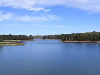 Millbrook Reservoir is a 16,000-megalitre artificial water storage reservoir in the Adelaide Hills, South Australia. It was built from 1914 to 1918 during World War I to control water flows in the upper River Torrens and provide gravity-fed water to Adelaide's eastern suburbs. It is named after the small town of Millbrook, demolished and removed during construction. During the 1970s, the nearby town of Chain of Ponds was also removed to prevent pollution of the reservoir's water.[1]