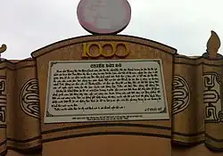 The Millennial Anniversary of Hanoi was officially celebrated from 1 to 10 October 2010, with the great celebration (Đại lễ kỉ niệm) held on Sunday, 10 October, which is also the Liberation Day of Hanoi (1954).[4] The ceremony is considered to be one of the most important events in Vietnam in the year 2010, after the official instruction No. 32-CT/TU of the Politburo of the Communist Party of Vietnam, to organize the event. A committee was established with members from the Politburo, the Government of Vietnam, and the City of Hanoi. The main purpose of the ceremony was to express gratefulness to generations of Vietnamese in the past who contributed to the defence and development of the country, and passing this tradition on to future generations.[2] Exactly 1,000 days before the official ceremony, a countdown clock 17 meters high and 8 meters wide was inaugurated at the Bà Kiệu Temple, in front of Hoan Kiem Lake, on 13 January 2008.[5]