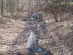 The river rises from an unnamed pond, now known as Friars' Cirque, Ea. along Bear Hill Road in Cumberland and flows due south to its confluence with Abbott Run at Robin Hollow Pond.