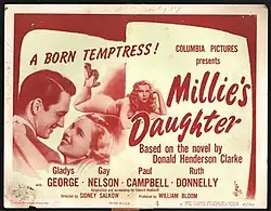 Millie's Daughter is a 1947 American drama film directed by Sidney Salkow, from a screenplay by Edward Huebsch, based on the novel of the same name by Donald Henderson Clarke. The film stars Gladys George, Gay Nelson, and Paul Campbell, and was released on March 20, 1947.