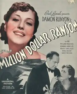 Million Dollar Ransom is a 1934 American drama film directed by Murray Roth and written by William R. Lipman and Ben Ryan. The film stars Phillips Holmes, Edward Arnold, Mary Carlisle, Wini Shaw, Andy Devine and Robert Gleckler.[1][2][3] The film was released on September 1, 1934, by Universal Pictures.