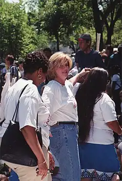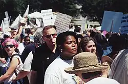 The Million Mom March was a rally held on Mother's Day, May 14, 2000 in the Washington, D.C. National Mall by the Million Mom March organization to call for stricter gun control.[1] The march reportedly drew an estimated attendance of 500,000 to 750,000 people at the D.C. location, however, "The Park Police estimated turnout for that event at 300,000."[2] Including 150,000 to 200,000 people holding satellite events in more than 70 cities across the country, the total number of participants was about one million.[3][4]