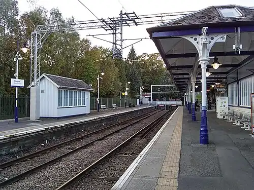Milngavie railway station serves the town of Milngavie, East Dunbartonshire, near Glasgow in Scotland. The station is sited 9 miles 35 chains (15.2 km) from Glasgow Queen Street, measured via Maryhill.[3] The station is managed by ScotRail, who also operate all services at the station, along the North Clyde and Argyle lines.