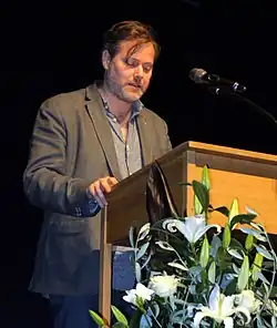 He won the Schweizer Theaterpreis in 2014.[45][46] the Hörspielpreis der Kriegsblinden,[47] and the jury prize of the festival Politik im Freien Theater,[48] among others, and was the youngest-ever winner of the Preis des Internationalen Theaterinstituts.[49]