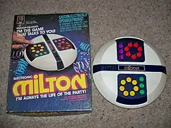 Milton is an electronic talking game. According to the patent, Milton was the first electronic talking game that allowed two people to play against each other.[1] Previously released devices of this type, such as Speak & Spell by Texas Instruments, were known primarily as teaching devices rather than competitive games.