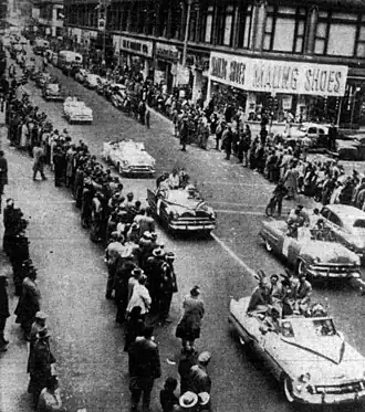 Residents of Milwaukee line the streets to welcome the arrival of the Braves franchise on April 8, 1953.