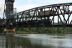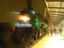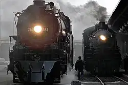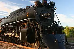 In June 1995, No. 261 hauled a one-way excursion, sponsored by Trains Magazine, over five days from Minneapolis to Scranton, Pennsylvania, where it participated in Steamtown National Historic Site's grand opening celebrations the following month.[3][4] Originally, it was supposed to doublehead with Pere Marquette 1225 from Michigan through Canada and into New York state, before continuing south.[3][5] While No. 261 was in Chicago, the doubleheader was cancelled due to routing issues. No. 261 operated on an alternative route over CSX into Pennsylvania and heading to New York via the Buffalo and Pittsburgh Railroad, while No. 1225 remained in Michigan.[3][5] The 4-8-4 stayed for one year in Scranton, pulling numerous excursions, including rare-mileage trips, a rare snowplow run, and a doubleheader excursion with New York, Susquehanna and Western 142 between Scranton and Syracuse, New York.[6][7] A Hancock 3-chime whistle was temporarily added to the locomotive and then replaced with an AT&SF 6-chime whistle, which remains on it today, but still also keeping its original non-Hancock 3 chime whistle and Leslie A-125 air horn. In early 1996, No. 261 returned to the Midwest. On its way home, the locomotive made its first runs over the newly formed BNSF Railway. It pulled a few sets of excursions in 1997 and 1998 over BNSF and TC&W trackage.