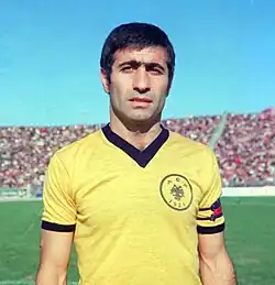A skillful striker who was later converted into an attacking midfielder, due to technical abilities, Papaioannou was characterized by his technique, dribbling abilities, physical strength, versatility in his finishing and his jumping skills that allowed him to stay in the air longer than his opponents. Throughout his playing career, Papaioannou was never shown a single red card, while he was booked with a yellow card only three times.[2] Papaioannou played for AEK for 17 seasons and won five league titles and three Greek cups, including a domestic double in 1978. He is the club's all-time top scorer and by the time he left AEK he was also the all-time top scorer of the Greek championship, but today he is the third place.[3] He is the player of AEK with the second most appearances in all competitions and the first in league appearances. His nickname was "the Vlach" (Greek: "ο Βλάχος"), due to his family origins.[4]