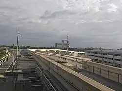 Min Buri station (Thai: สถานีมีนบุรี) is a Bangkok MRT station on the Pink Line.[1][2] The station is located on Soi Ramkhamhaeng 190/4, adjacent to Ramkhamhaeng Road in Min Buri district, Bangkok.[3] The station has four exits, has a park and ride facility and is also the location of the Pink Line Depot.[4] The station opened on 21 November 2023 as part of trial operations on the entire Pink Line. In the future it will be an interchange station for the Orange Line once it opens.[5][6][7]