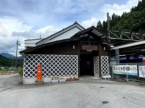 Minami-Otari Station (南小谷駅, Minami-Otari-eki) is a railway station on the Ōito Line in the village of Otari, Kitaazumi District, Nagano Prefecture, Japan. The station is numbered "9".[2] The station is on the electrical borderline of the JR East and JR West systems and operations are shared between the two companies.[1] The section north of this station, operated by JR West is not electrified and all JR East services terminate here.
