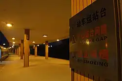 Several mainland Chinese metro systems use the phrase extensively; on the Tianjin Metro, announcements and stickers on train doors and platforms mention the gap (as well as to "mind the gap") in both English and Chinese. (The Chinese phrase is 小心站台空隙.) The Beijing Subway uses "Mind the Gaps" (note the plural). On lines operated by Beijing MTR Corp., Ltd., the Hong Kong/British influence is prominent, with the English announcement "Please mind the gap between the train and the platform" – having a British pronunciation – being played every time a train arrives. Both the Shanghai Metro and the Nanjing Metro use versions with slightly mutilated grammar ("Caution, Gap" and "Care the Gap", respectively, although the Chinese is the same).