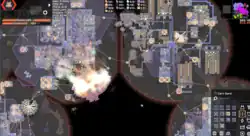 The central goal of gameplay is for the player to avoid having all of their core(s) destroyed, all structures are rebuildable upon destruction (with cores needing to be built atop dedicated "Core zone" equal to or greater than the size of the core that is built), with the destruction of all active core(s) results in immediate loss.[11] On "survival" maps, enemies are dispatched in waves of progressively stronger units that must be destroyed before they reach and destroy all active core(s), making it similar to a tower defense game; enemy pathfinding automatically seeks out poorly-defended areas or openings to break through.[11][8] Contrariwise, "attack" maps have (in addition to waves of units) enemy structures and core(s) which must be destroyed to win.[5][15][16]
