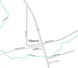 Mineral is an unincorporated community in Athens County, Ohio, United States.[1] Centered on State Route 356, it was established as a coal mining community. It is located on Mud Lick Run, which flows into nearby Hewitt Fork, a tributary of Raccoon Creek. The B&O Railroad once ran through the community, but was abandoned in the 1980s. In recent years, the portion of the old railroad grade going west from the community has become the Moonville Rail-Trail. The King Switch Tunnel on the grade is close to the community. The next larger community is New Marshfield, also unincorporated, to the east in the same township.