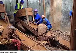 There are coltan[a] deposits which attract artisanal miners in the Ryamukona colline, near the Mwogere River's mouth at 2°48′27″S 29°36′22″E / 2.807382°S 29.606196°E / -2.807382; 29.606196 (Mwogere River).[18] The waste water from coltan mining is dumped into the river. It contains coltan, which is extracted from the river, causing large disturbances in the river's bed and flow.[19] In January 2017 1,077.4 kilograms (2,375 lb) of coltan were seized in Kiziba, Kabarore commune. One Burundian and eleven Rwandans were arrested as they were getting ready to cross the Mwogere River border on the way to Gisenyi, Nyaruguru district in Rwanda.[20]