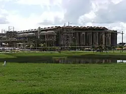 Afobaka Dam was built between 1961 and 1964 on the Suriname River to produce energy for the electrolysis process for the production of aluminium from bauxite at the Suralco alumina refinery which was managed by Alcoa from 1965 to 2017.[28]