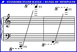 In addition the minipiano has fewer keys; pianos made today extend down 8 semitones lower than the minipiano, and 7 semitones higher. As a result a lot of modern piano music is simply unplayable on minipianos.
