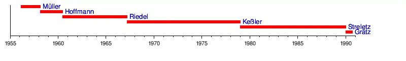 | 5 | Generaloberst Fritz Streletz (1926–2025) | 10 January 1979 | 31 December 1989 | 10 years, 355 days | |