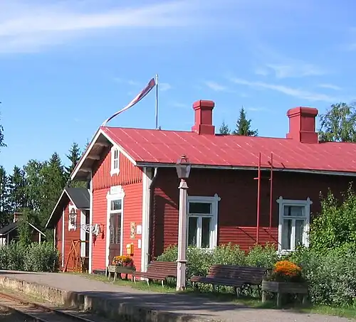 Minkiö railway station (Finnish: Minkiön asema) is a neighborhood of the Kiipu village and a railway station at the Jokioinen Museum Railway, situated north of the Minkiö village on the northern shore of the river Jänhijoki, and on the western side of the Jänhijoki village in the municipality of Jokioinen. The neighborhood which developed around the railway station is located about eight kilometers from the center of Jokioinen and about eight kilometers from Humppila.