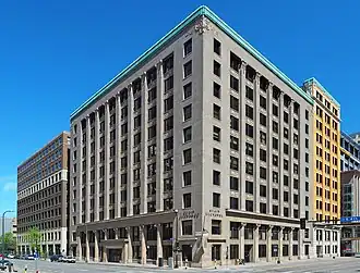![]() The three-building Minneapolis Grain Exchange viewed from the west | |