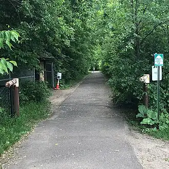 Minnehaha Trail is a 1.5-mile (2.4 km) paved, multi-use trail in Minneapolis, Minnesota, United States, that connects Minnehaha Regional Park and Fort Snelling State Park – two of the most popular recreation destinations in the Twin Cities metro area. The trail is considered a segment of a longer, loosely connected bicycle route system along the Mississippi River. Users of Minnehaha Trail traverse under a forest canopy. The trail received local recognition for its natural beauty, but it was criticized for its worn pavement and lack of signage.[1]