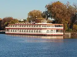 Minnesota Centennial Showboat was a traditional riverboat theatre docked at Harriet Island Regional Park on the banks of the Mississippi River in downtown Saint Paul, Minnesota, United States. The showboat contained an intimate jewelbox theatre that seated 225. The interior was decorated to keep in time with the Victorian Era style commonly associated with showboats. The Minnesota Centennial Showboat was run through a partnership with the University of Minnesota Theatre Department and the Padelford Boat Company. The showboat was a longtime tradition with the University beginning in 1958. The University Theatre utilized the showboat as a learning opportunity for its students to experience professional theatre. The showboat had its final performance in 2016.[1]