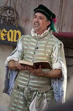The Minnesota Renaissance Festival began on September 11, 1971, with Tovah Feldshuh as the Queen,[3] in Jonathan, Minnesota. More than 25,000 people visited the two-weekend grand opening of the festival, at which time it was called Minnesota Renaissance Fair (changed to Minnesota Renaissance Festival later on) and promoted as “A Celebration of Nature, Art and Life!” It was at the Jonathan site in 1971 and 1972. In 1973, it moved to a farm on highway 41 up the hill [north] from Chaska, according to info on page 17 of the book "The History of the American Renaissance Festival" by Al Olson, published in 2021. In 1974, it moved to its current site in Shakopee, where it continues as one of the oldest and largest Renaissance festivals in the United States. It has played host to the early careers of such national acts as the magicians Penn & Teller and The Flying Karamazov Brothers juggling troupe, and it currently hosts acts such as Zilch the Torysteller, Puke and Snot, Johnny Phoenix, The Tortuga Twins, and The Danger Committee.[4] On August 19, 1975, Penn & Teller did their first show together at the Minnesota Renaissance Festival.[5] Jason Mraz also worked as a pickle boy (a boy or man who sells pickles) early in his performance career.[6]