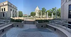 In the beginning for the planning of the third State Capitol, a Capitol approach with surrounding grounds received little attention. The Board of State Capitol Commissioners, essentially prohibited development plans of the grounds in the 1895 architectural competition instructions.[3]