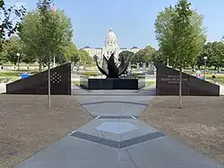 The Minnesota Medal of Honor Memorial, unveiled on September 22, 2022, is dedecated to Minnesota's Medal of Honor recipients. Situated at the main entrance of the Capitol Mall, it connects with other veterans' memorials and tributes while offering views of the Capitol building. Its design creates a connection to the adjacent World War II Memorial and the Court of Honor. The memorial incorporates the "Promise of Youth" sculpture that previously occupied the space.[27][28]